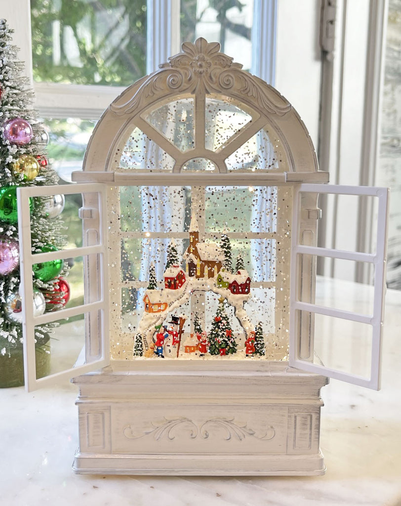 14 Inch Snow Globe Christmas Tree Figurine Lantern Music Lighted Water Church In Swirling Glitter Decorations Lantern For Christmas Season Home Decoration Amazon De Home Kitchen