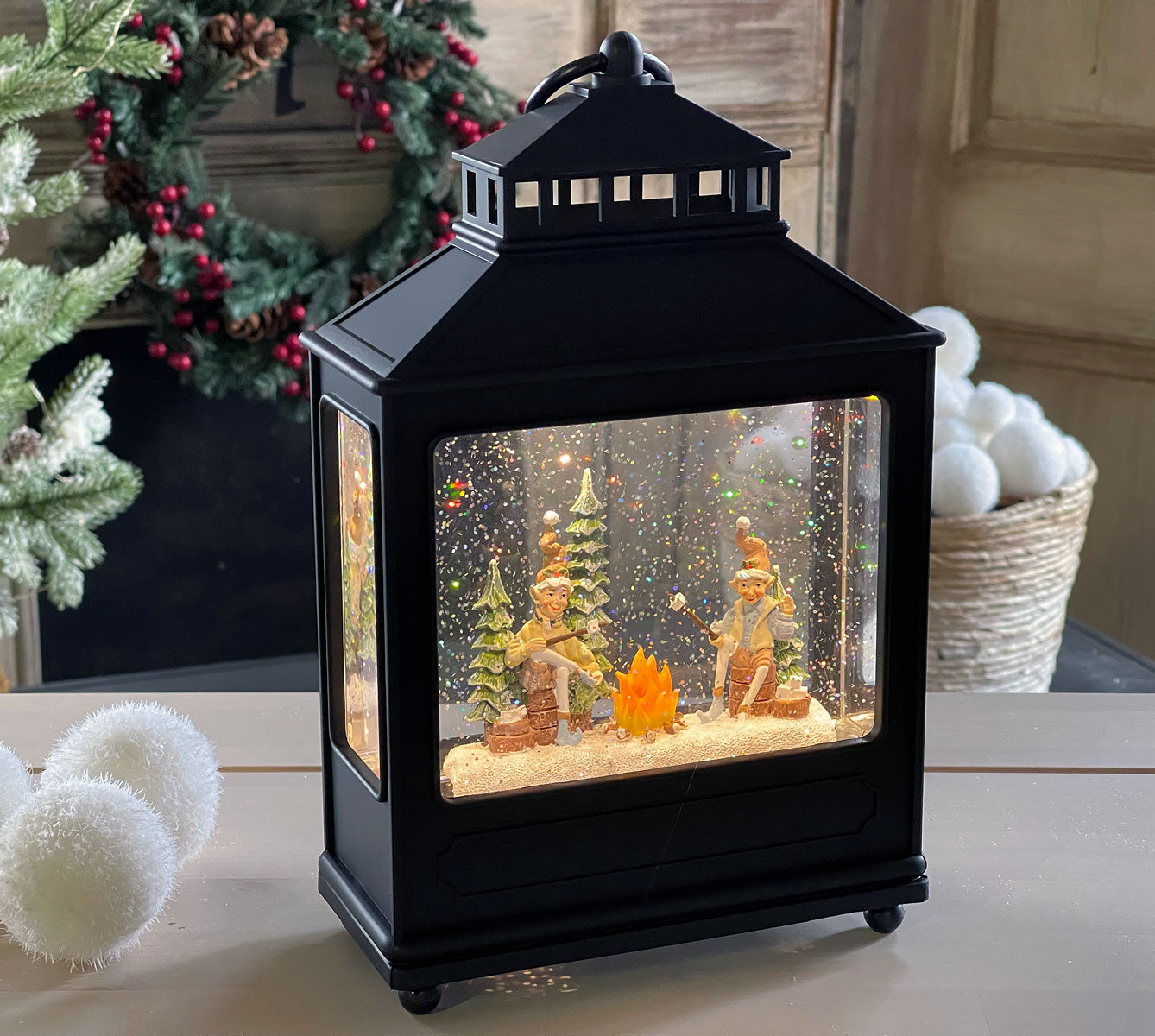 Elves At Campfire Lighted Water Lantern With Swirling Glitter 411632 Lighted Water Lanterns